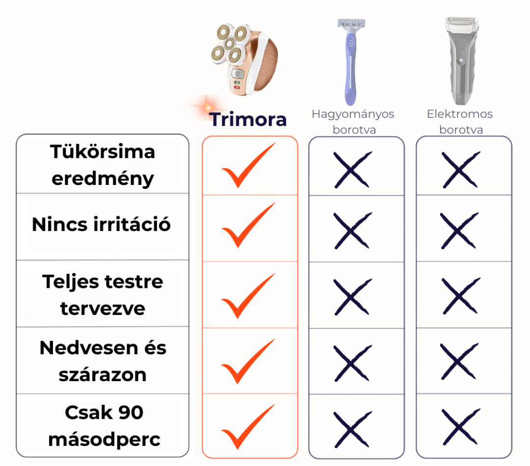 A borotválkozás többé nem nyűg, hanem pillanatok alatt letudott rutin: se vágások, se benőtt szőrszálak, csak selymes bőr. A Trimora ezt adja neked – most 30% kedvezménnyel, ajándékokkal és gyors szállítással.